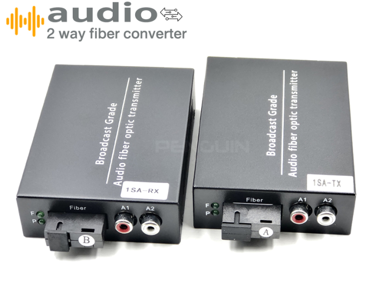 ตัวแปลงสัญญาณ (Media Converter) เสียง (Audio) ผ่านสายไฟเบอร์ออปติก Single-mode ระยะไกลแบบ 2 ทาง 1 ช่องส่งสัญญาณ RCA + 1 ช่องรับสัญญาณ RCA ใช้ Fiber 1 Core