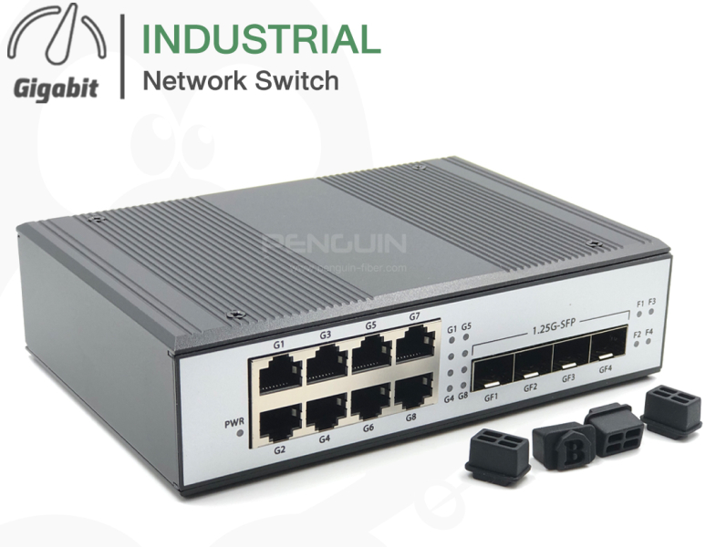 Gigabit Industrial Switch 8 Port + 4 SFP รองรับ ความเร็ว 1G การเชื่อมต่ออุปกรณ์เน็ตเวิร์กคอมพิวเตอร์ และ ไฟเบอร์ออปติก ผ่าน sfp โมดูล