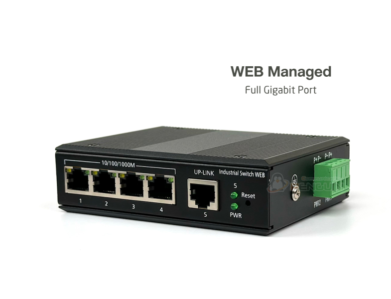Full Gigabit Industrial Managed Switch 5 Port สวิตซ์อุตสาหกรรมแบบจัดการ Gigabit 5 พอร์ต (Smart WEB) เป็นอุปกรณ์เครือข่ายที่ใช้เชื่อมต่ออุปกรณ์หลายตัวบนเครือข่ายคอมพิวเตอร์ ได้รับการออกแบบมาโดยเฉพาะสำหรับสภาพแวดล้อมทางอุตสาหกรรม และมีอินเทอร์เฟซแบบเว็บสำหรับการตั้งค่า