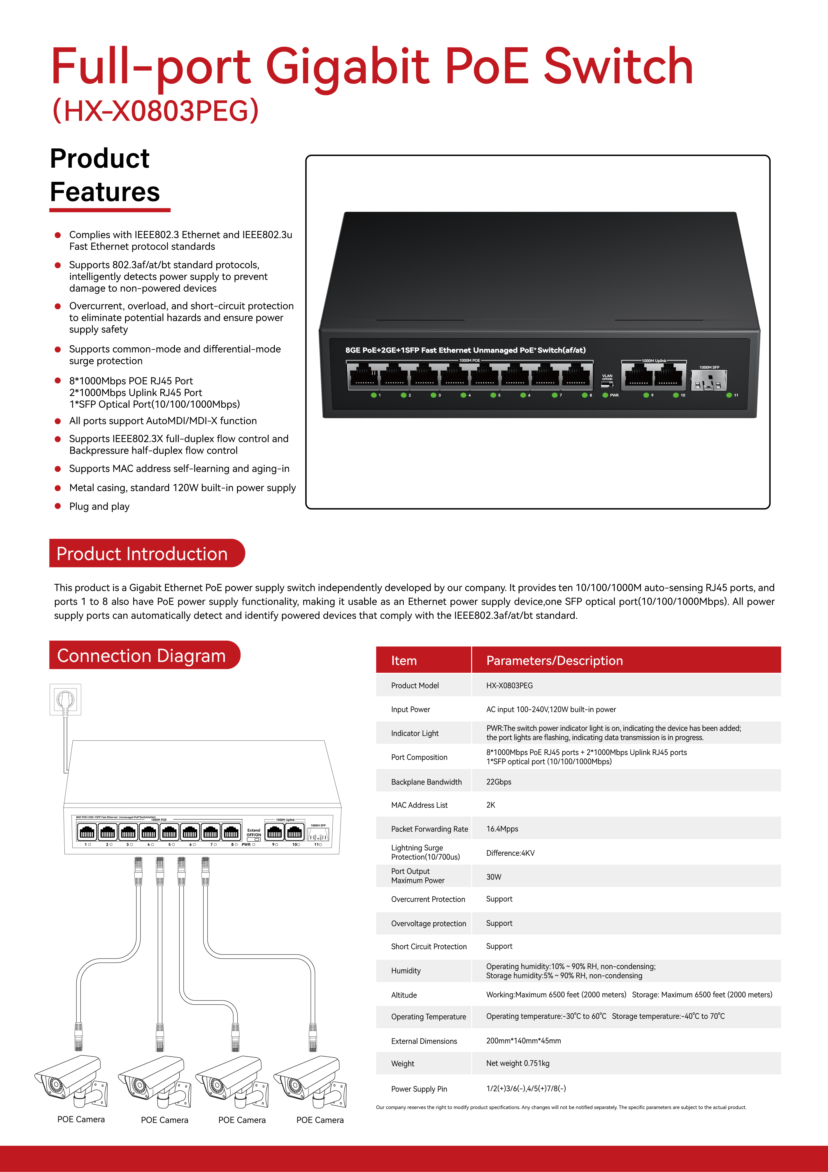 tags : สวิตช์ PoE, PoE Switch, สวิตช์ PoE Gigabit, Gigabit PoE Switch, สวิตช์ 8 พอร์ต PoE, PoE 8 Port, 8+2+1 PoE Switch, สวิตช์ 8+2+1, Uplink 2 Port, 1 SFP Switch, สวิตช์ SFP, PoE 120W, 120W PoE Switch, 802.3af, 802.3at, PoE+, Unmanaged Switch, Plug and Play, สวิตช์กล้องวงจรปิด, CCTV Switch, PoE Camera Switch, Access Point PoE, IP Camera, Network Switch, Ethernet Switch, Full Gigabit Switch, Surge Protection 4kV, HX-X0803PEG