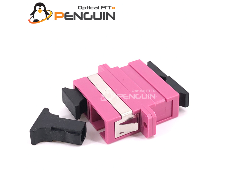 หัวต่อไฟเบอร์ออฟติกมัลติโหมด Multi Mode Fiber Optic Adapter SC Duplex OM4 with Flange สำหรับเชื่อมต่อสายไฟเบอร์ออฟติก สีชมพู (Pink)
