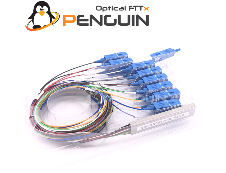 สายแยกสัญญาณแสงไฟเบอร์ออฟติก PLC Splitter SC/UPC ใช้แสงสัญญาณความถี่แสงในงาน Passive Optical 1x16 เช่นงาน CTV,MATV,GPON,EPON,XPORN