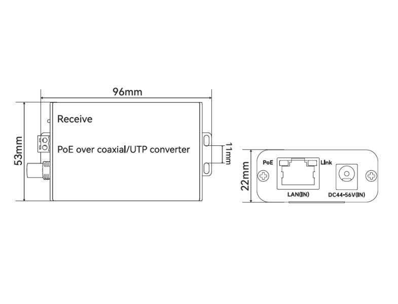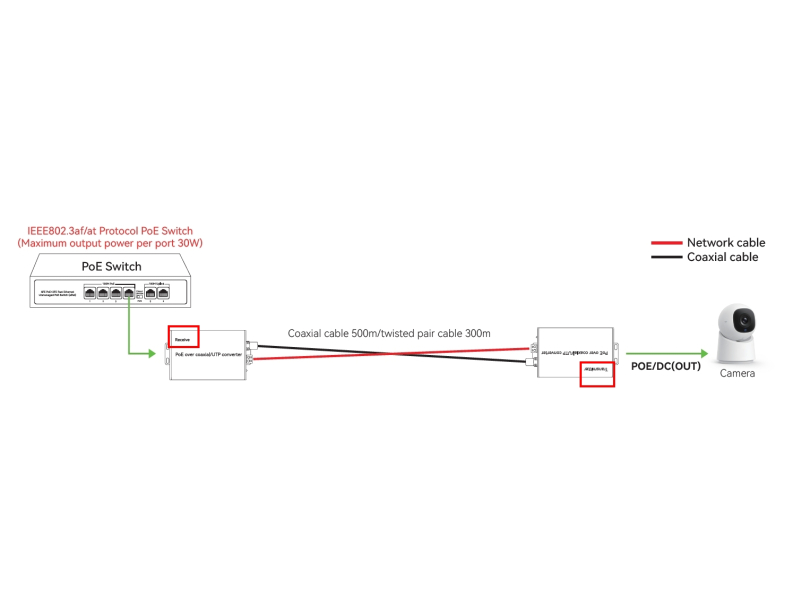 | ประเภท | PoE over Coaxial Network Extender (ชุดตัวส่ง/ตัวรับ) |