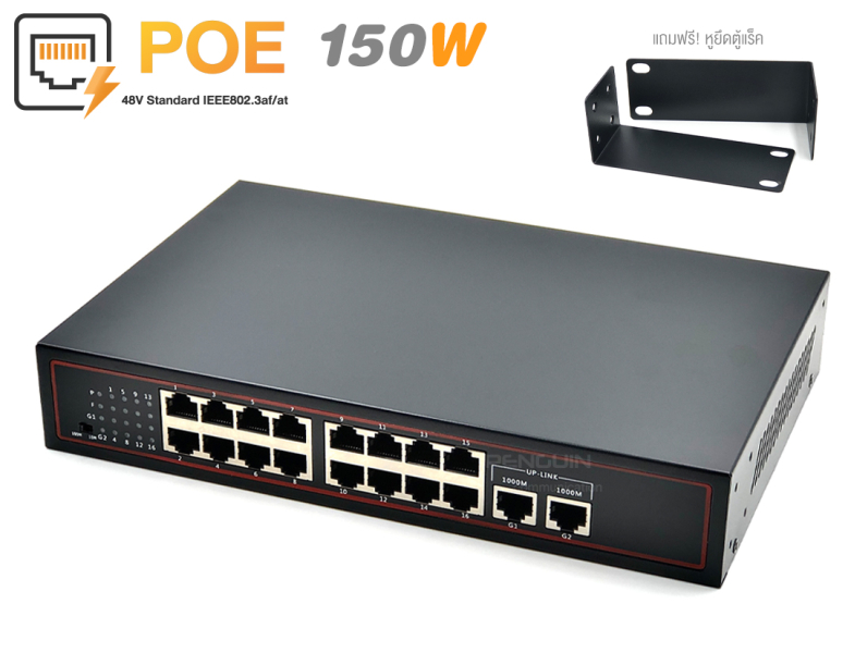 - PoE Switch 16 Port + 2 Gigabit Ethernet Uplink รุ่น POE-10016-2GE